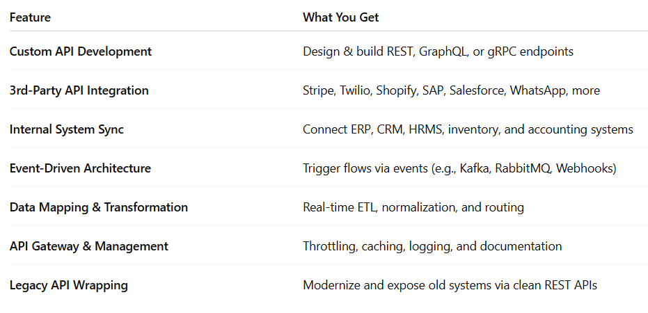 Whether you’re integrating a legacy ERP, syncing multiple SaaS tools, building API-based ecosystems, or automating multi-system workflows — we ensure data flows accurately, securely, and at scale.
