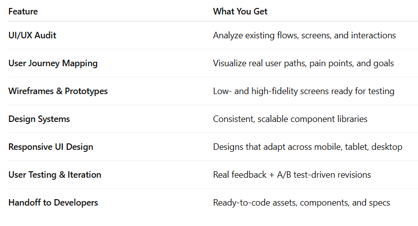 From wireframes to pixel-perfect prototypes, we design digital products that delight users, drive business goals, and stand out in crowded markets.
