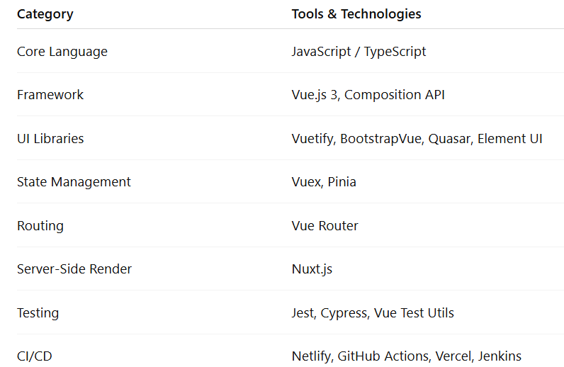 Experienced in Vue 2 and Vue 3, including Composition API
